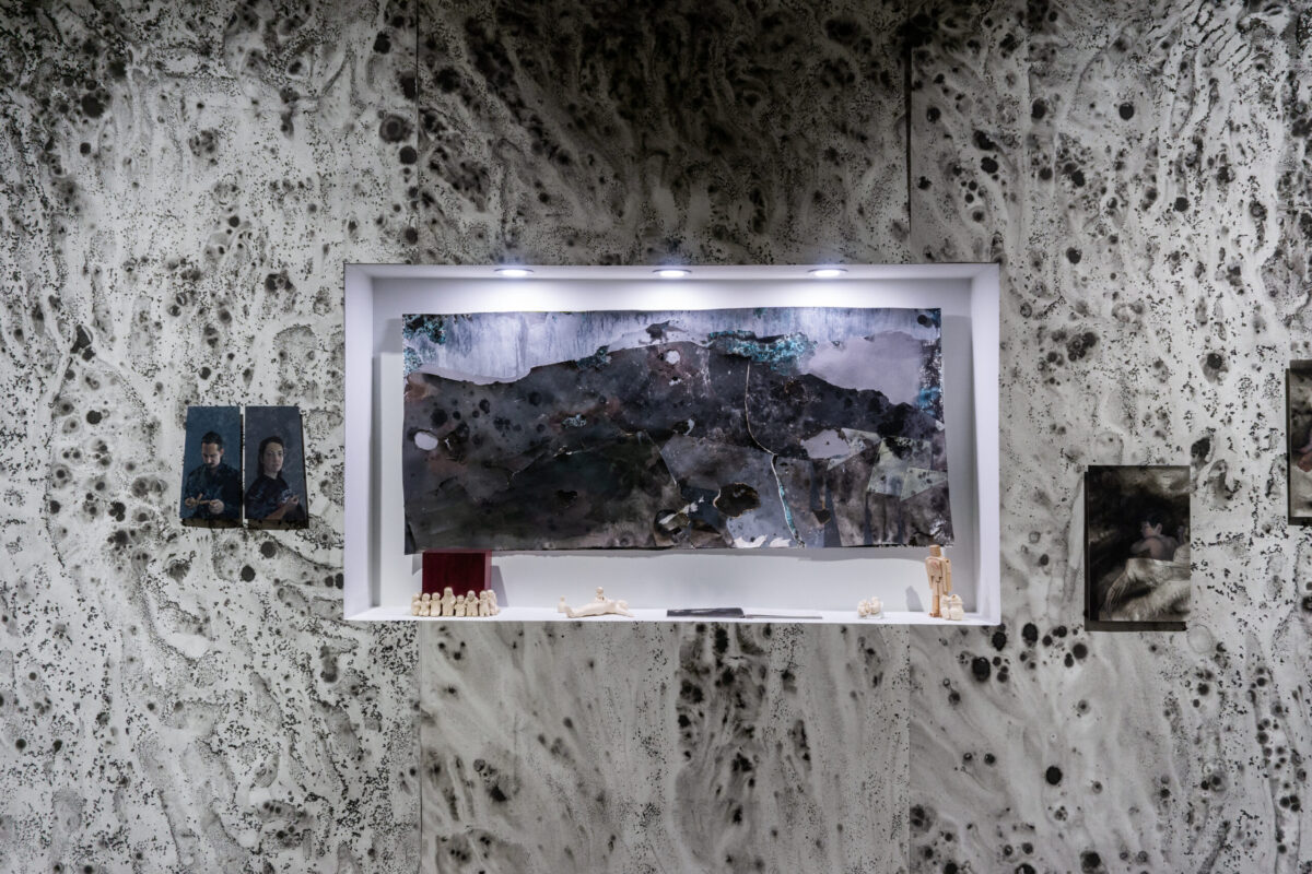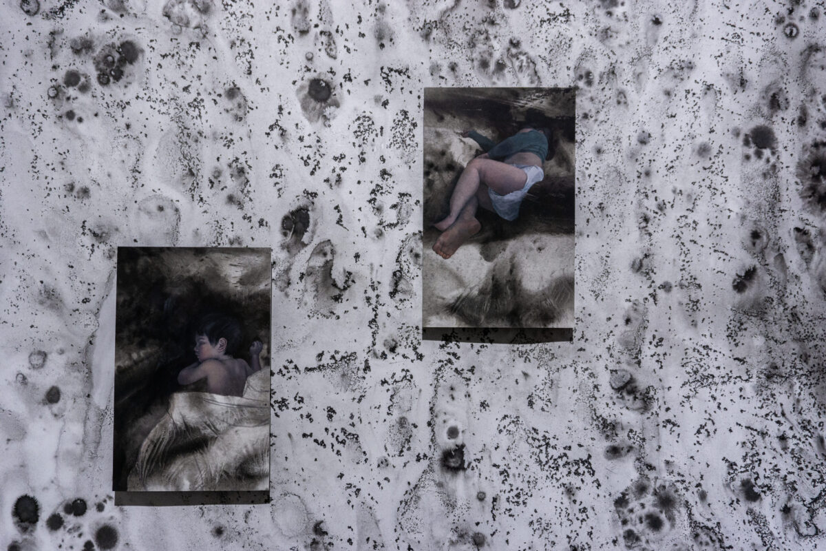 Megan Harrison’s newest body of works includes a series of mixed media paintings based on intimate, personal, moments, and observations. The work reflects on her experiences following her return from Berlin as an awardee of Contemporary at Blue Star’s Berlin Residency Program and throughout the pandemic, namely the shrinking of her world down to the immediate family unit. The paintings draw aesthetic influence and build upon a foundation inspired by Greek epic poetry, altarpieces, and medieval tableau to address themes of mortality, loss, tragedy, the universality of human emotions, destruction, and preservation. The paintings find kinship with precious objects which function only for brief moments, like those processed in mass or used ritualistically.